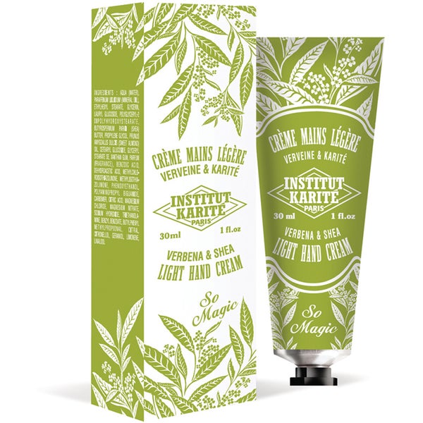 Treat hardworking hands to the comforting properties of Institut Karité Paris Shea Light Hand Cream So Magic in 'Verbena'.