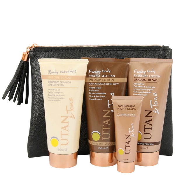 Experience a complete tanning routine with the 4 Piece Discovery Set from utan. Combining to deliver a streak-free, golden glow, the set contains a pre-tan body scrub, self-tan lotion, tan intensifier and a nourishing night crème. Skin will be supple, nourished and sun-kissed.